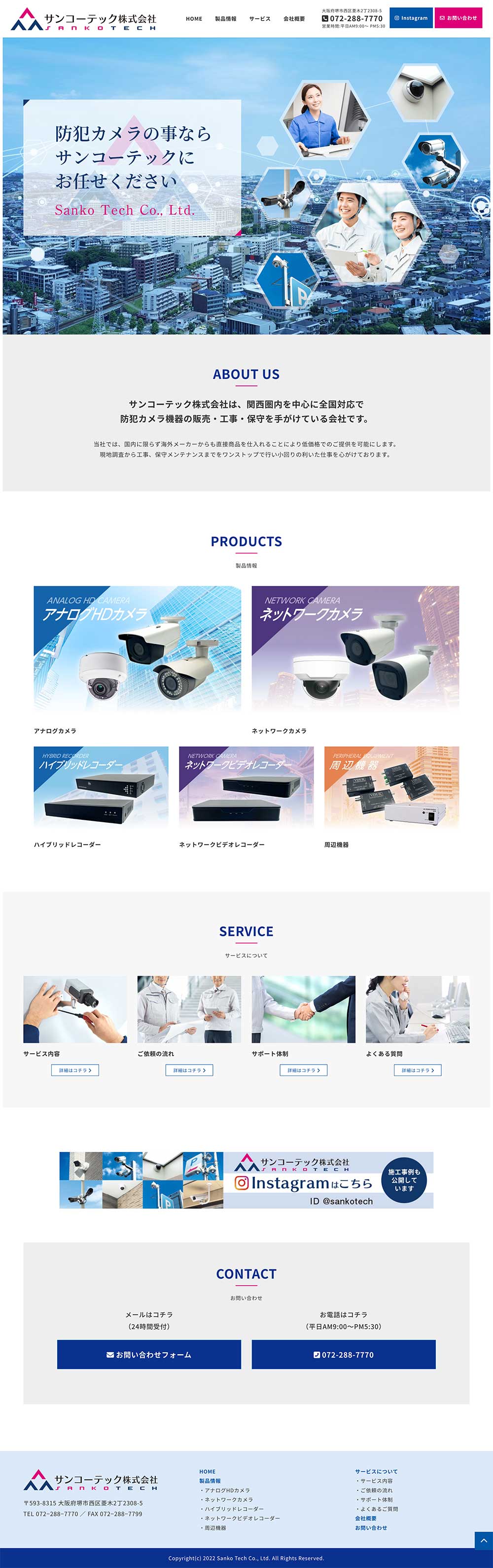 防犯カメラを取り扱われているため、信頼感や安心感をしっかり感じられるよう全体的に青系でさわやかにまとめ、ビジネス感のあるイメージで作成いたしました。