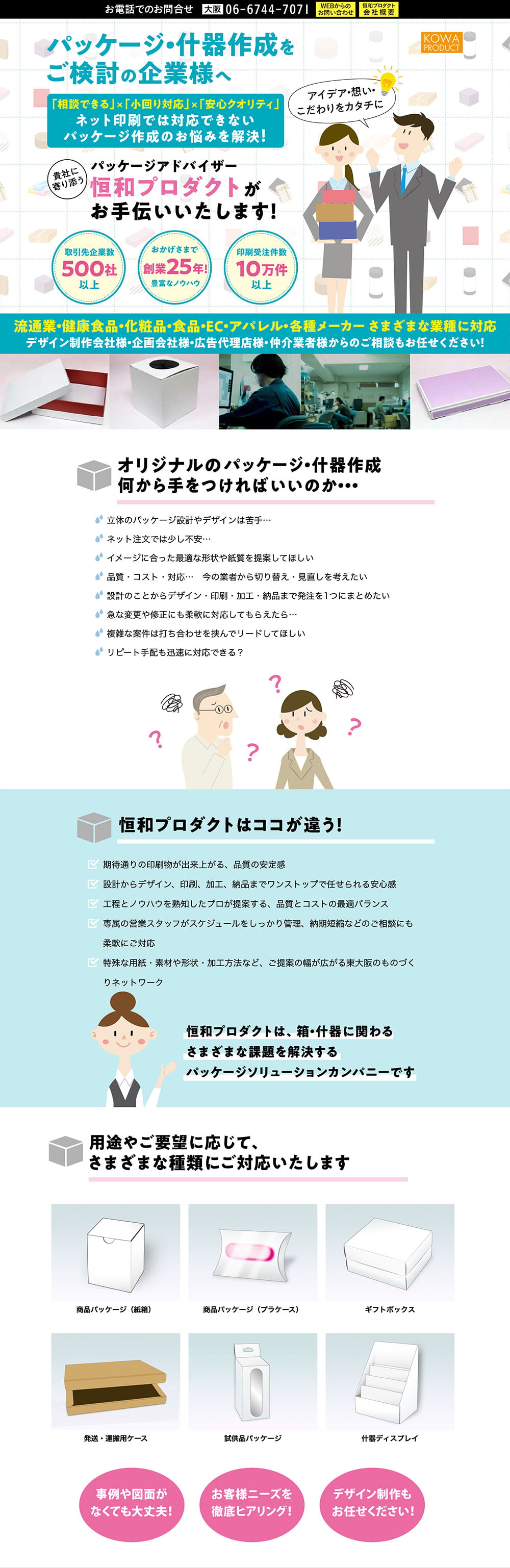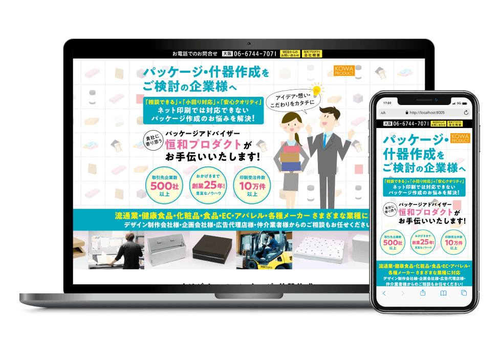 ネット印刷で対応できないパッケージや什器作成をご検討の企業様向けにご提供している自社関連サービスの営業用ランディングページを作成しました。