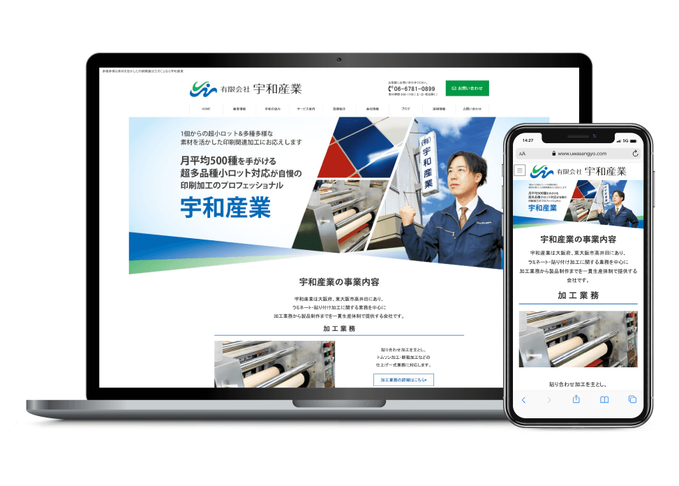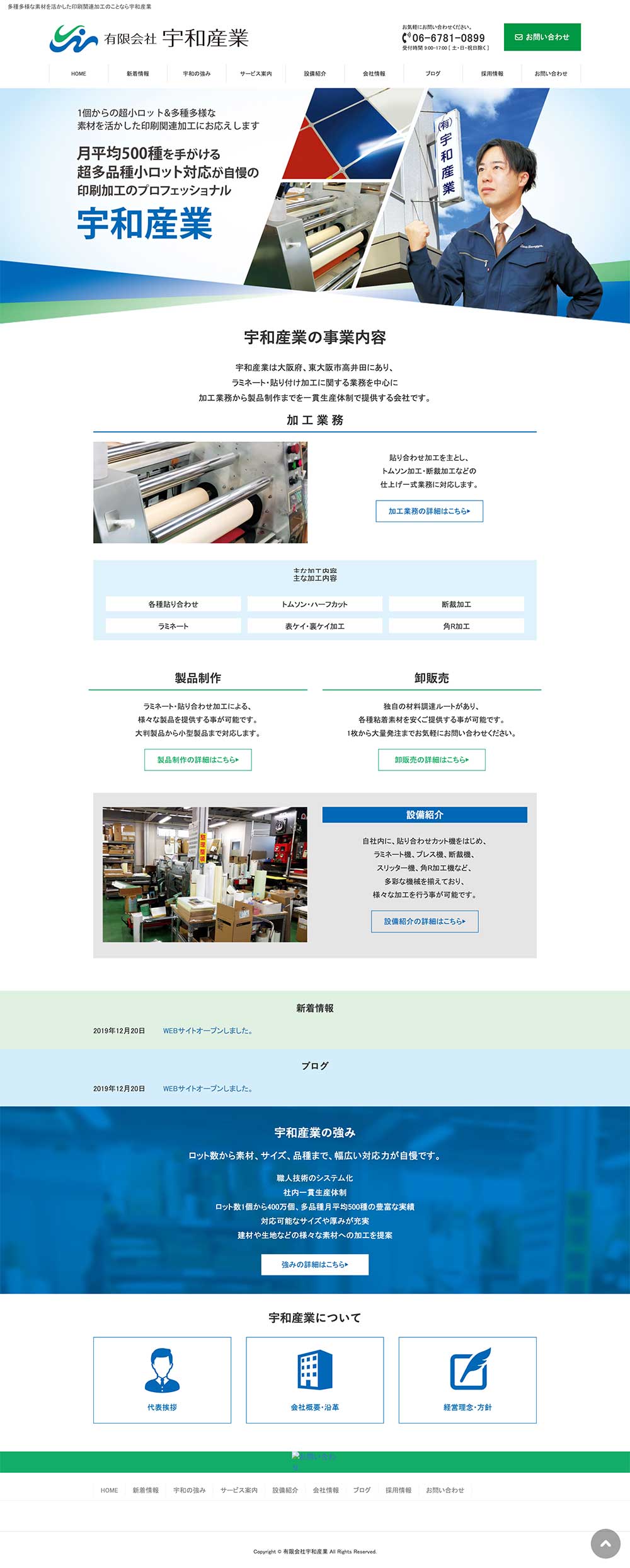 ラミネート・貼り付け加工など、小ロット印刷加工を得意とする総合印刷会社様のホームページを作成しました。社長様が顔の見える親しみやすいホームページにしたいとのご要望で、社長様の写真をTOPに起用し、随所にも社長様の顔の見えるサイトデザインにしました。