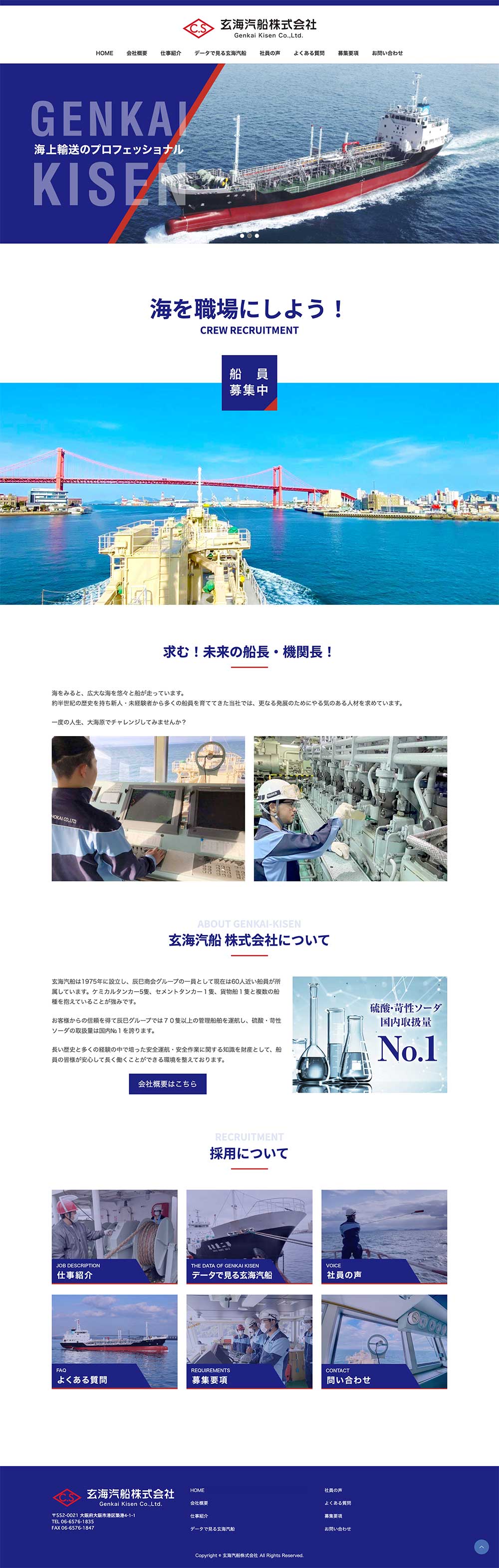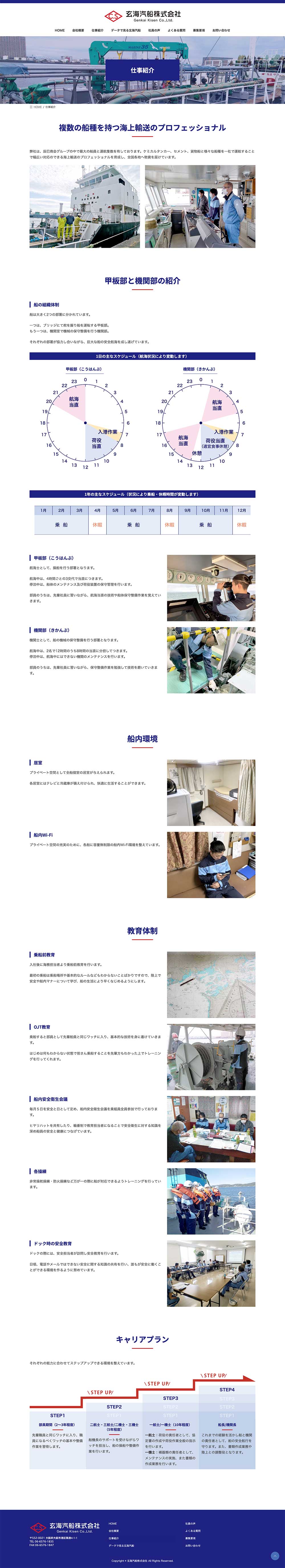 海上輸送会社様より、主に学生向けの採用案内パンフレットと採用サイトの作成依頼をいただきました。採用サイトについては具体的にイメージされている形があるとのことで、そういったご要望をお伺いしながらワイヤーフレームを作成しました。独自の迫力ある機械の写真や海上の写真をたくさん保有されておりましたので、積極的に写真を使用し、リアルな空気が感じられるように心がけました。