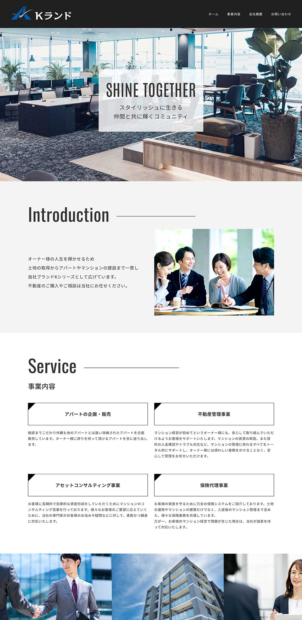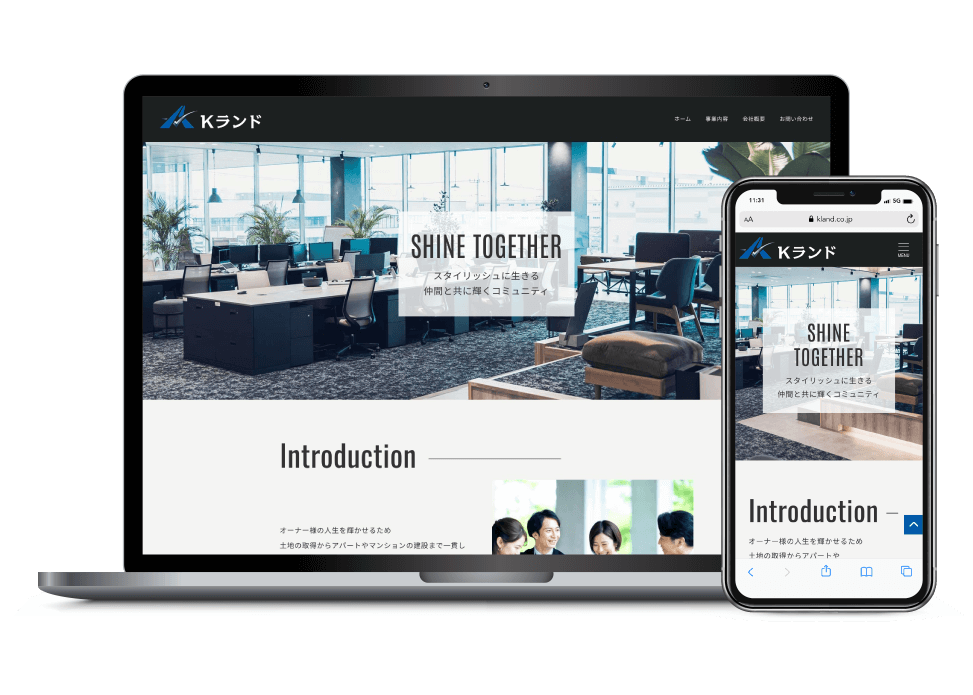 不動産企業様の社名リニューアルに伴い、ロゴマークの作成とホームページの作成のご依頼をいただきました。BtoBのオーナー様向けコーポレートサイトで、おしゃれなデザイナーズ物件を企画したり、マンション資産形成コンサルティング業務を行なっているので、そのイメージに合うようスタイリッシュなイメージをご希望でした。そのご意見を受けて、黒をベースに洗練されたアーバンなデザインで仕上げました。