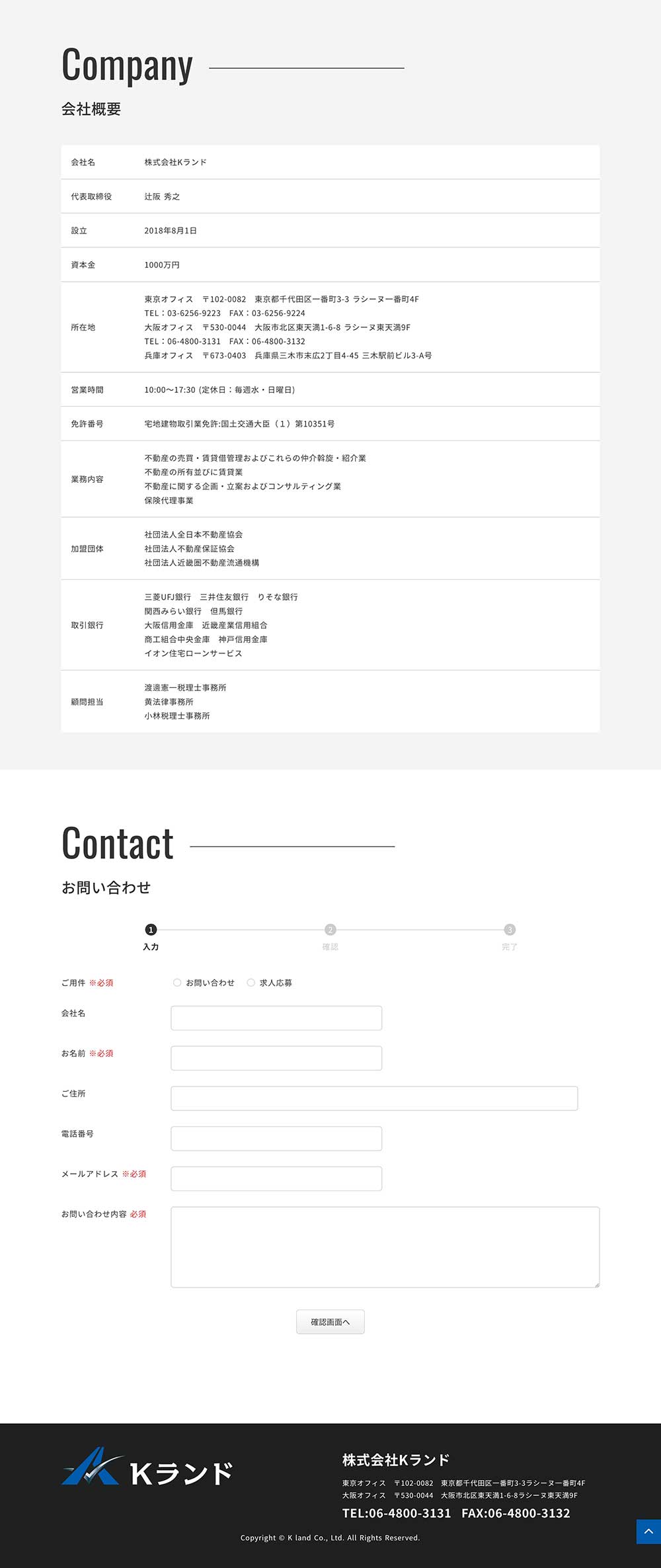 ロング1ページ + 問合せフォーム